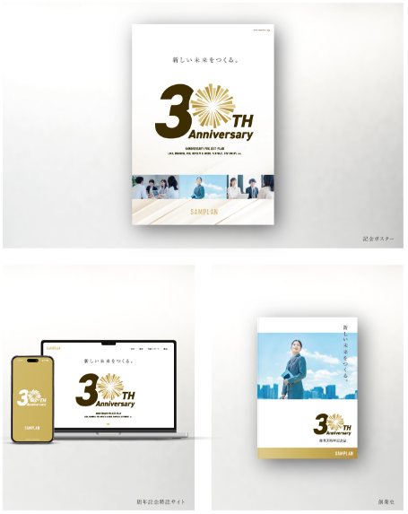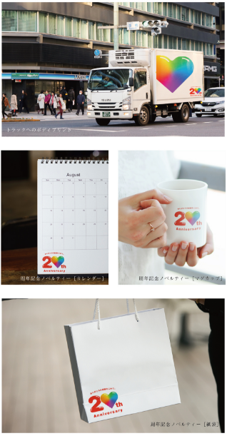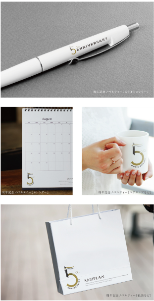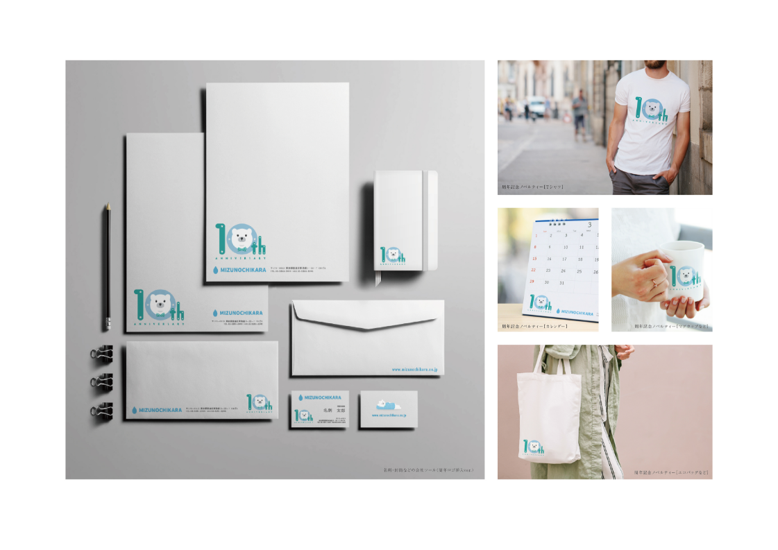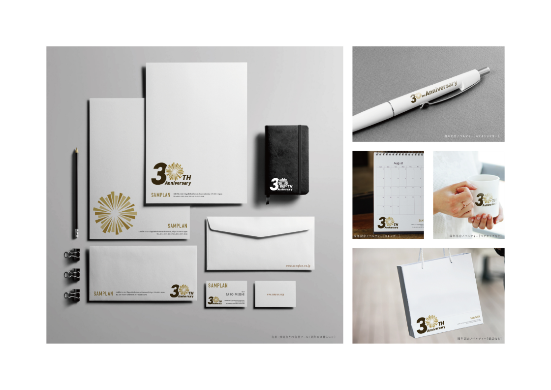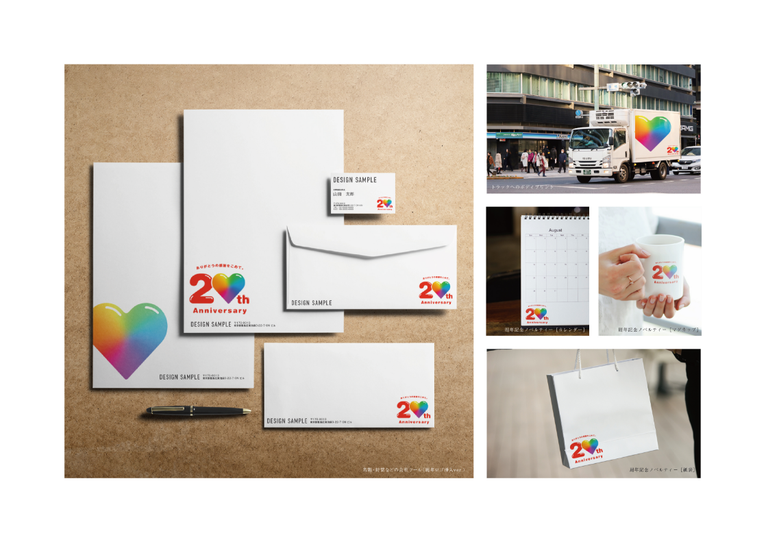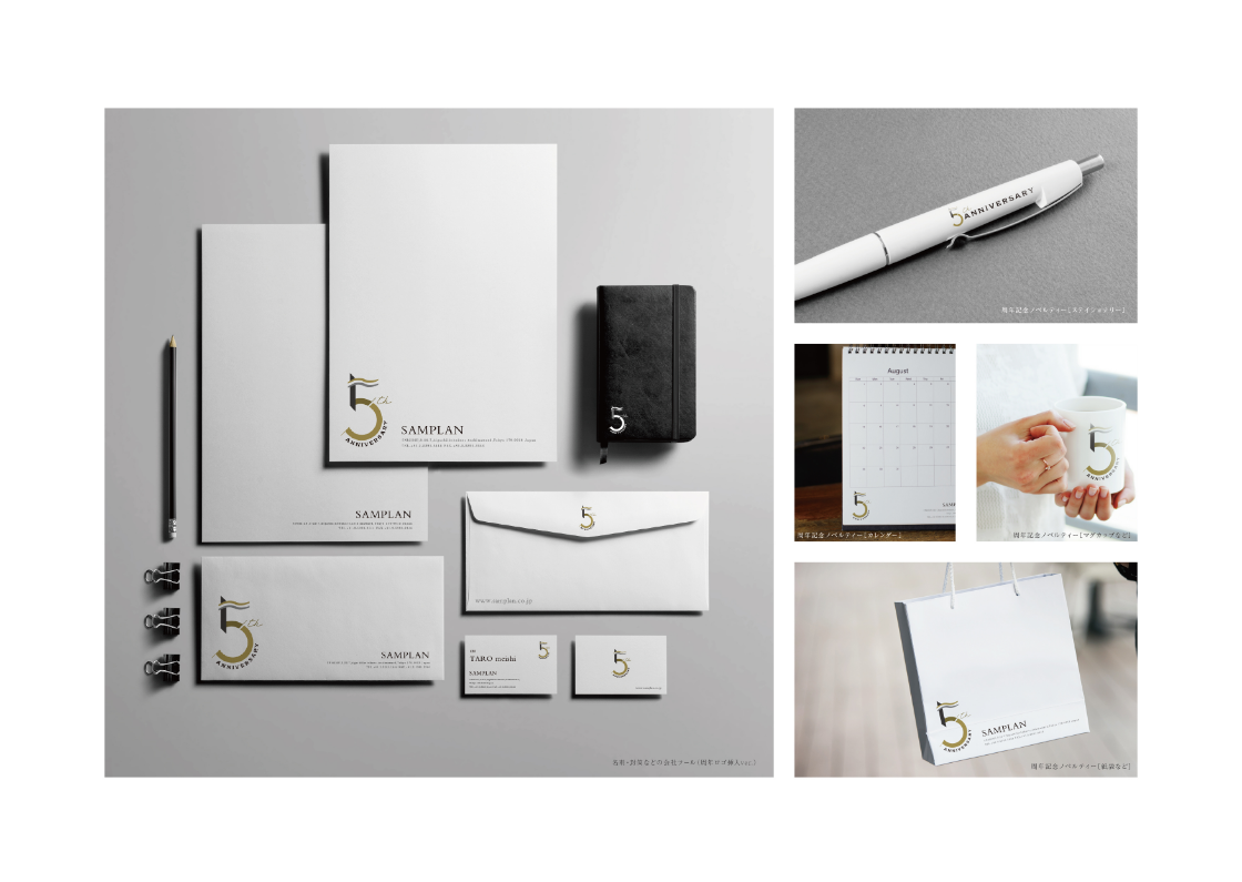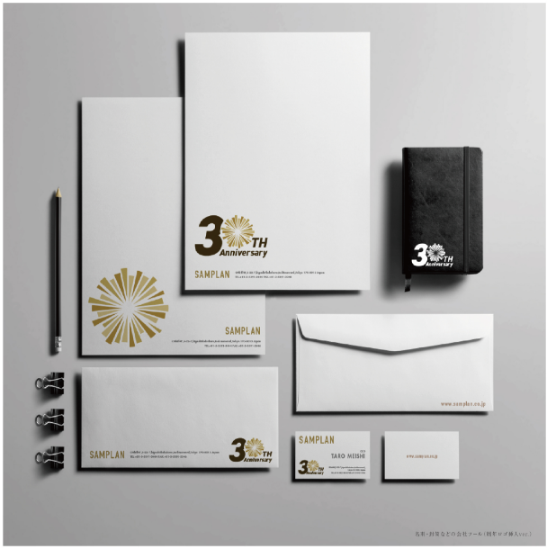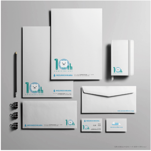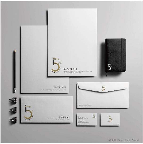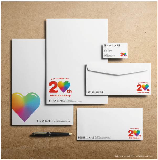封筒や名刺などの会社ツールに記念ロゴなどを入れて、